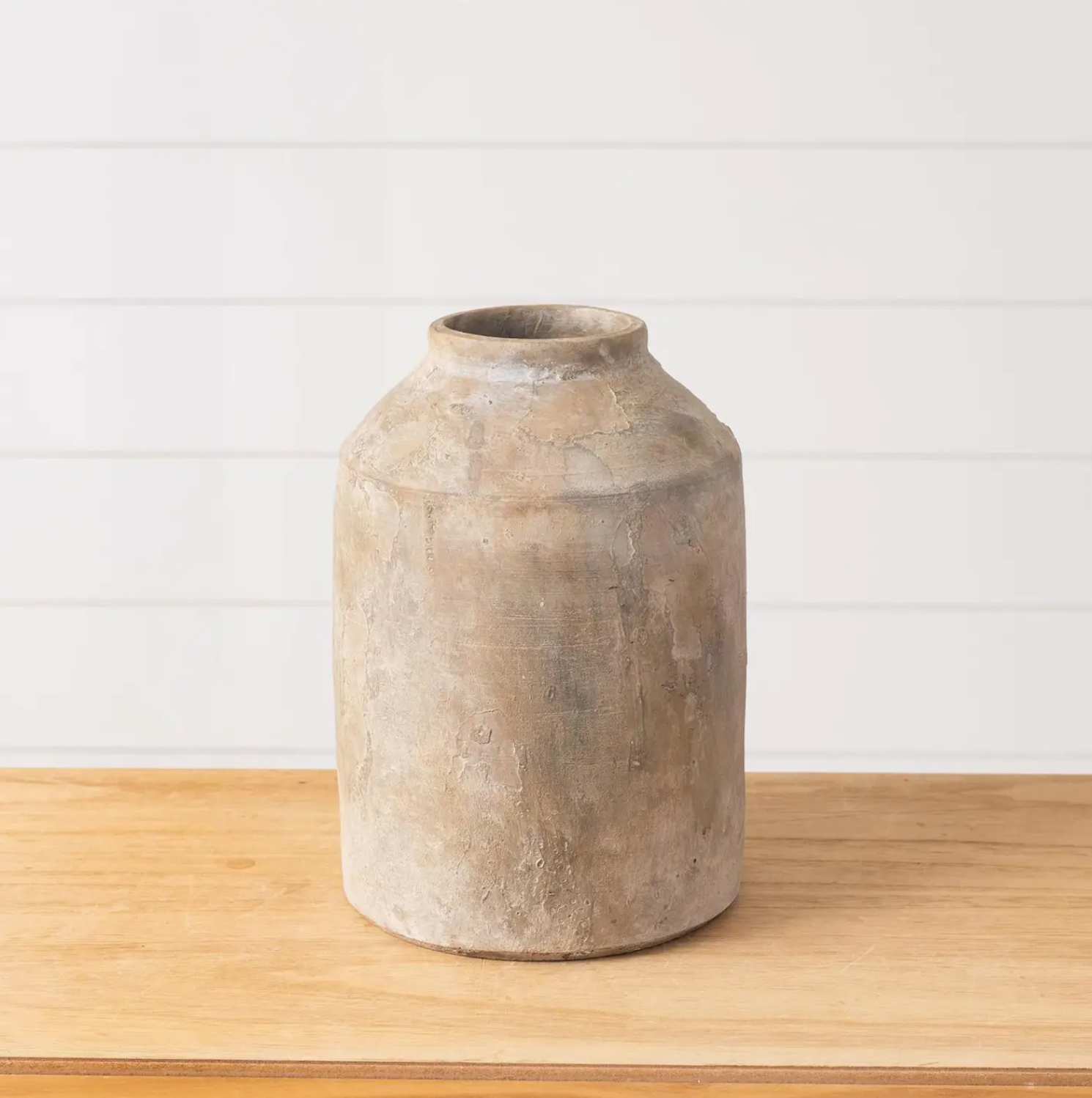 Bring a touch of artisanal elegance to your space with this Antiqued Clay Vase*. Featuring a naturally weathered finish in muted gray and warm taupe undertones, this vase evokes the beauty of handcrafted pottery with a history all its own. Its organic texture and subtle imperfections add depth and character, making each piece truly unique.