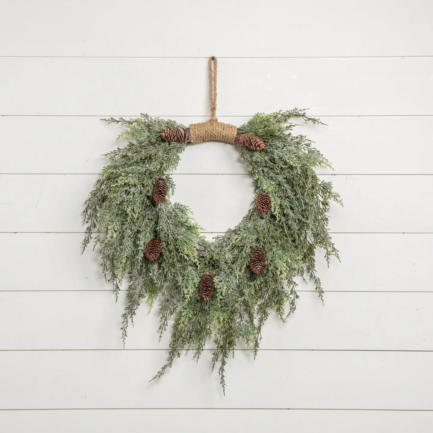 Dark Green Iced Cedar & Cones Hanging Wreath