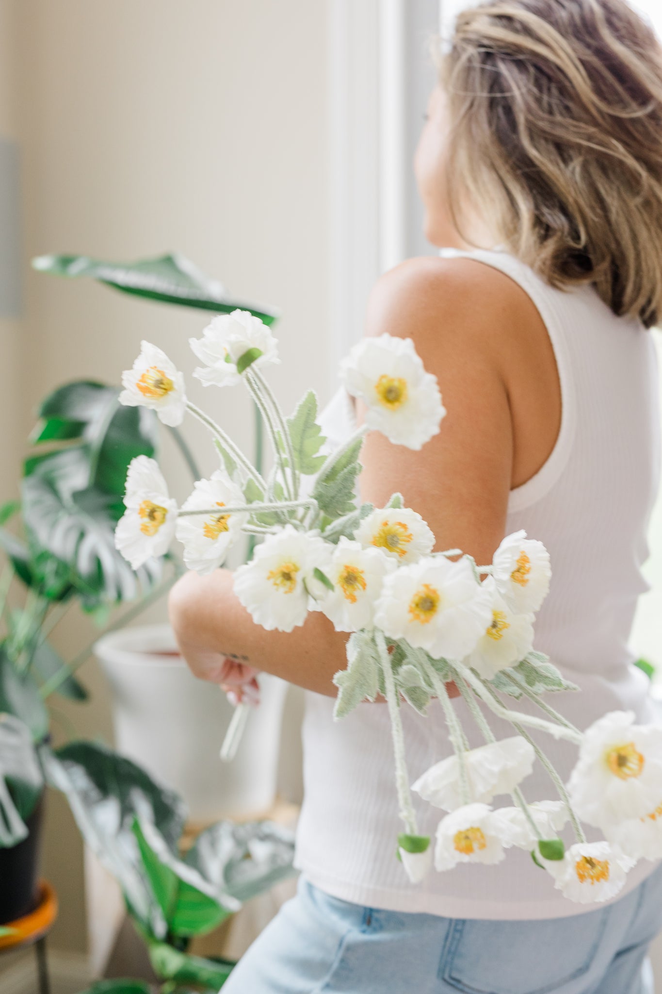 Bring soft, airy beauty to any space with our Poppy Whisper stems*. Each stem features three fully opened poppies and one budding bloom, with blooms measuring 2” wide. The lifelike green 22" stems have a natural fuzzy texture and may lightly shed when handled, adding to their realistic charm. Sold as a set of six, perfect for creating a full arrangement or dividing into smaller displays.